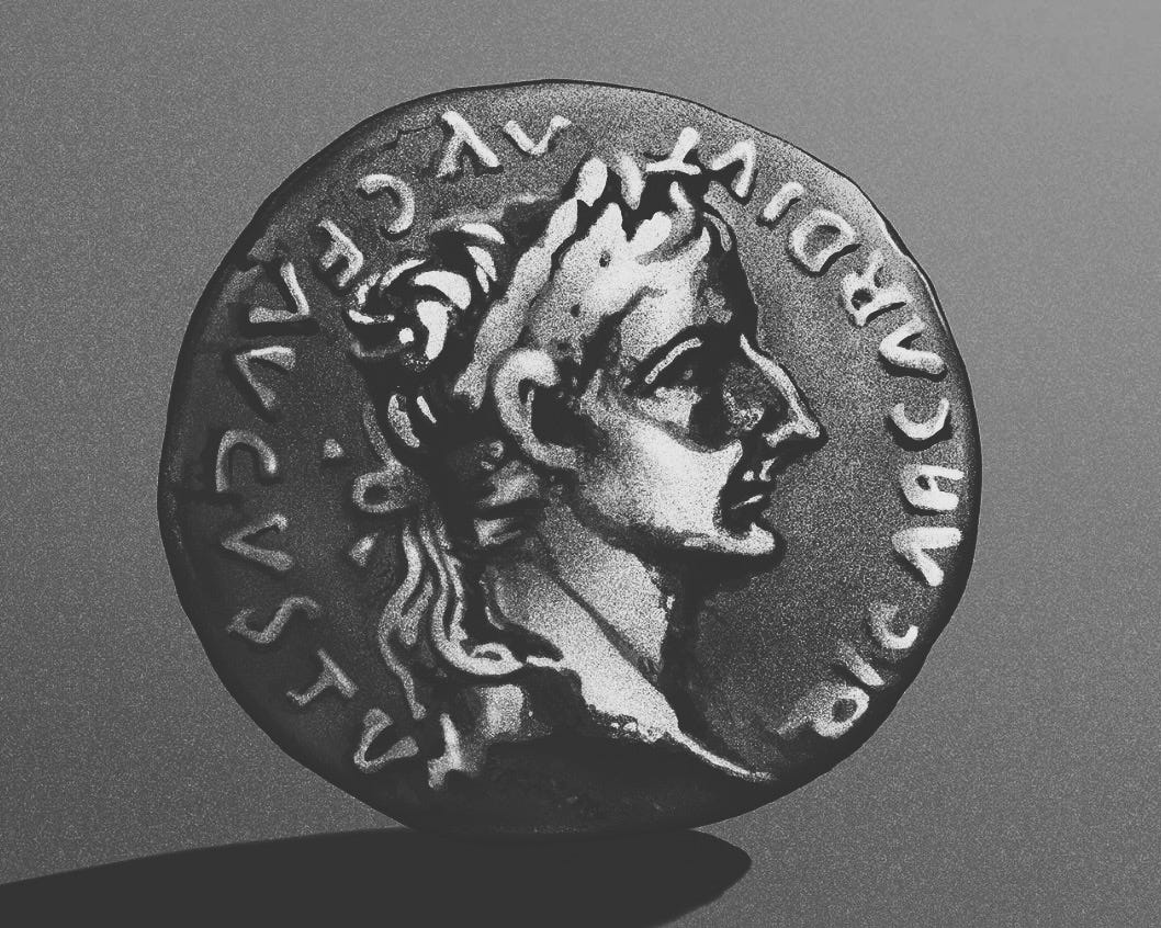 A denarius was a Roman silver coin, often used for paying taxes. On it was an engraved image of Tiberius Caesar, along with the inscription, “Tiberius, son of the Divine Augustus.” Adhering to God’s command against deified images, Jews at the time did not carry around the denarius; they used a copper coin as a substitute for daily commerce. But Jesus specifically asks for a denarius in order to make his point clear: “Whose eikon [the Greek word for ‘image’] is on the coin?” They answer, “Caesar’s.” Jesus responds: